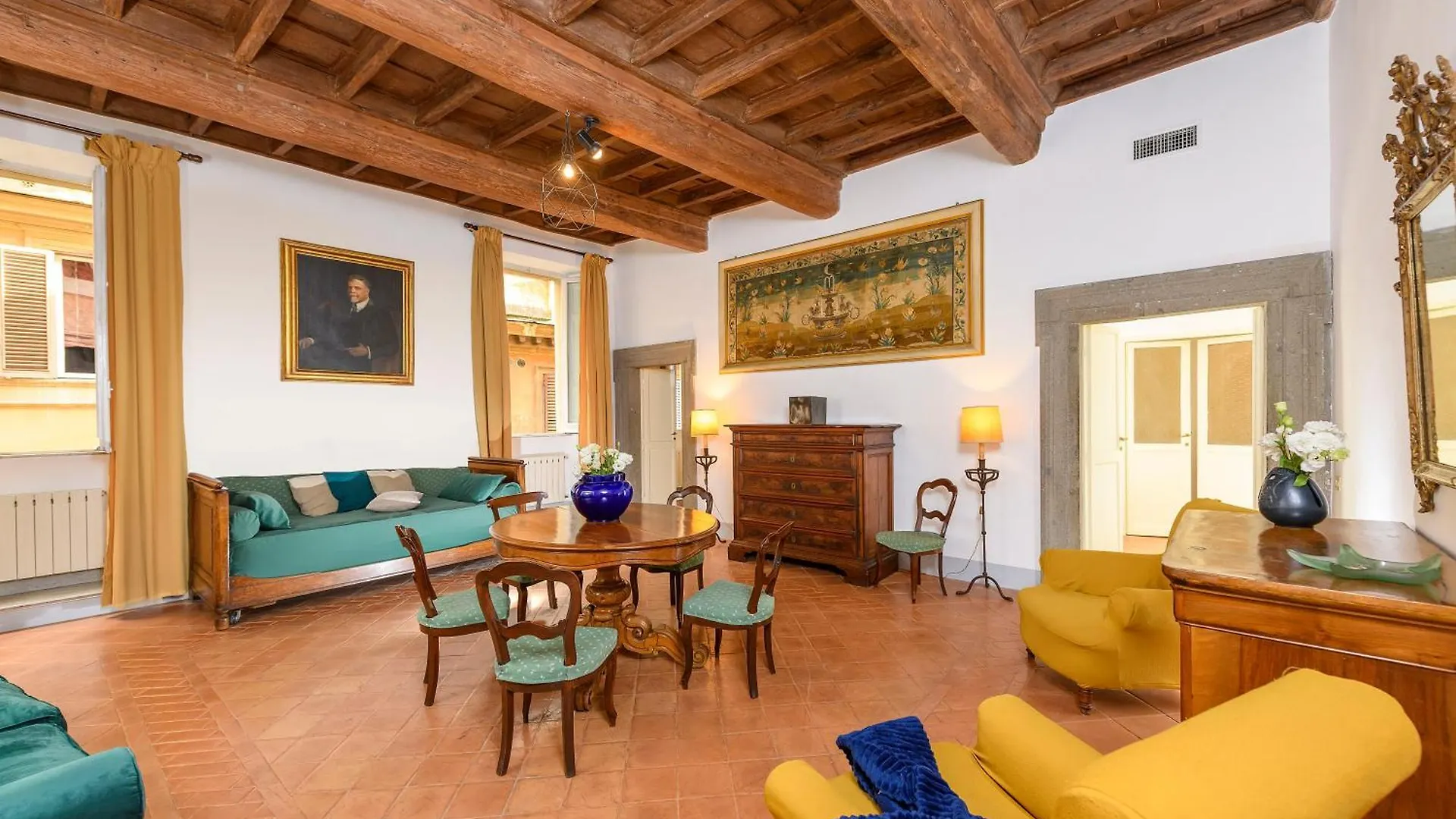 The 110 ft² Cartari Deluxe Apartment Rome lies in a central location in Rome, just 6 minutes' walk from Museo di Roma. The 2-bedroom apartment features Wi-Fi in public areas.